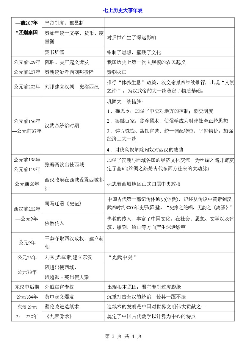 七上历史大事年表