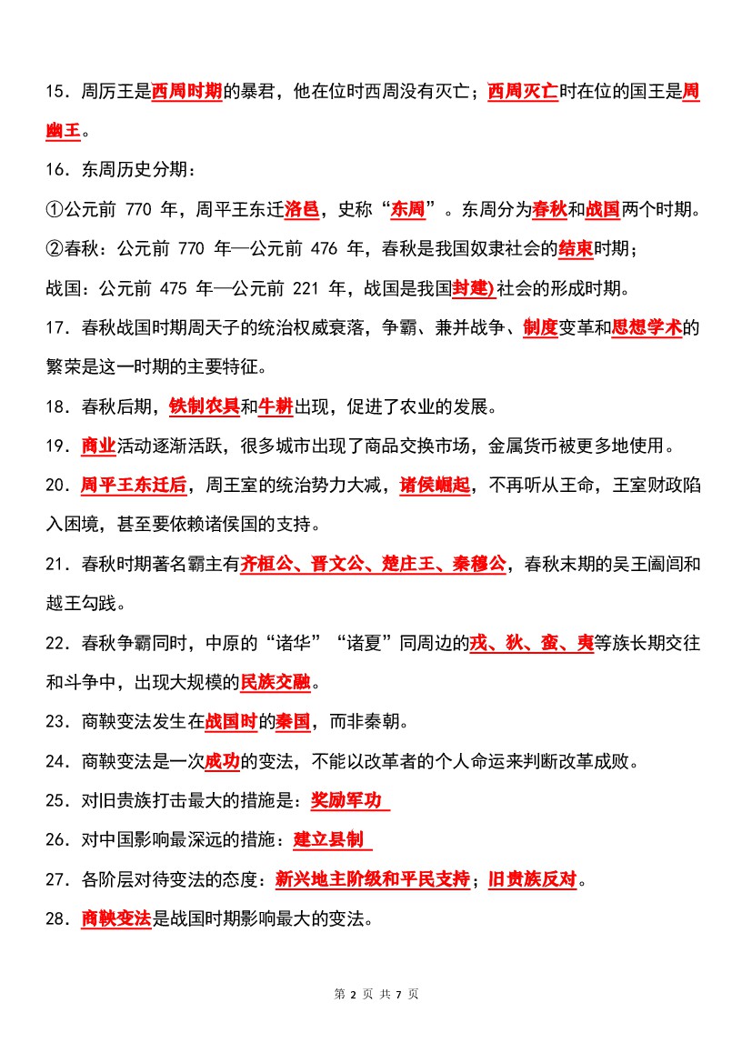 七年级(上册)历史:常考【易错点】汇总(90 个)(暑假提前练习)