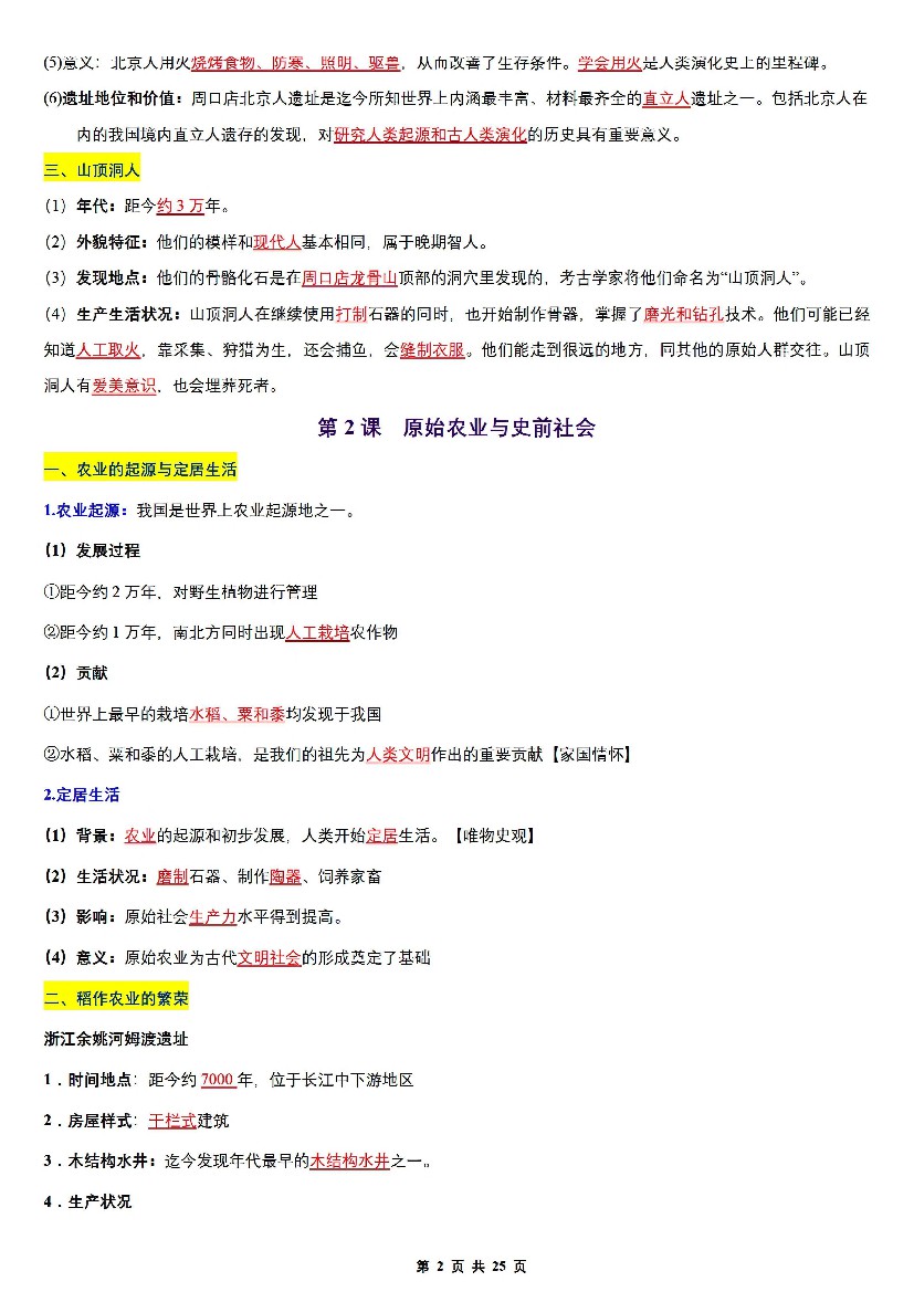 初中 【七上历史】全册知识总结彩色版(新教材)(暑假提前练习)