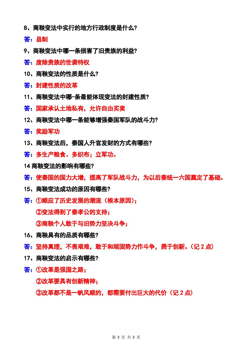 初中 七年级(上册)历史:商鞅变法必考17个考点