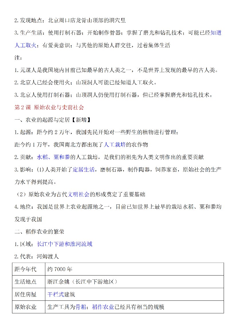 初中 【新教材】2024版七年级上册历史全册知识提纲
