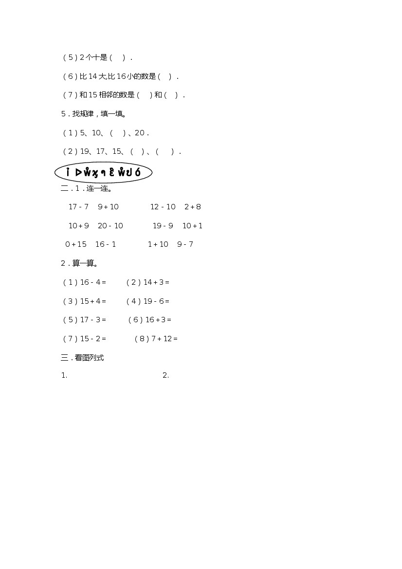 小学 一上数青岛63版17--第5单元测试卷二