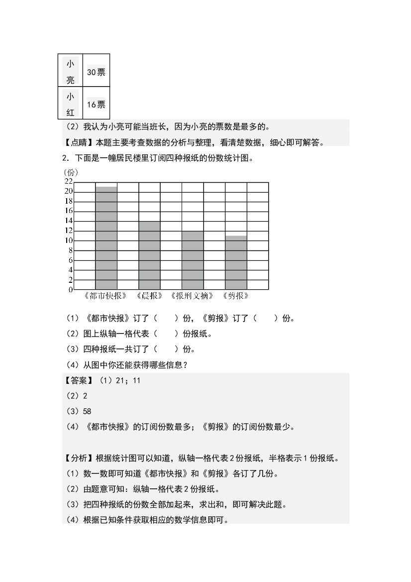 小学 25年秋【二上数学】期中典例专练三:统计表和条形统计图综合-(教师版)沪教版