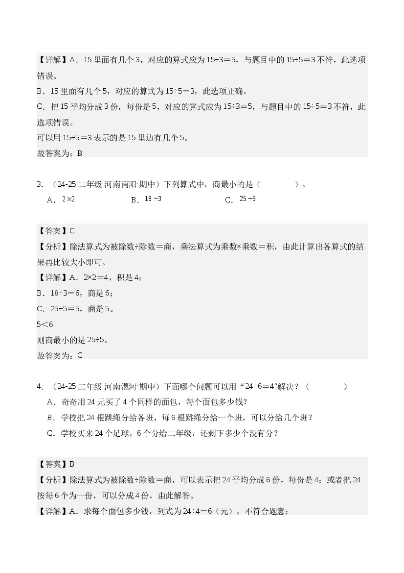 首页 > 全部 > 期中专项 > 专题03:1~6的表内除法(期中专项训练)二年级数学上册(人教版·新教材)(解析版)