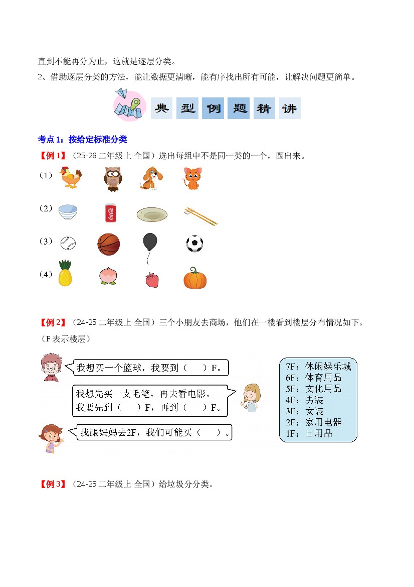 首页 > 全部 > 期中专项 > 专题01:分类与整理(期中知识清单)二年级数学上册(人教版·新教材)(学生版)