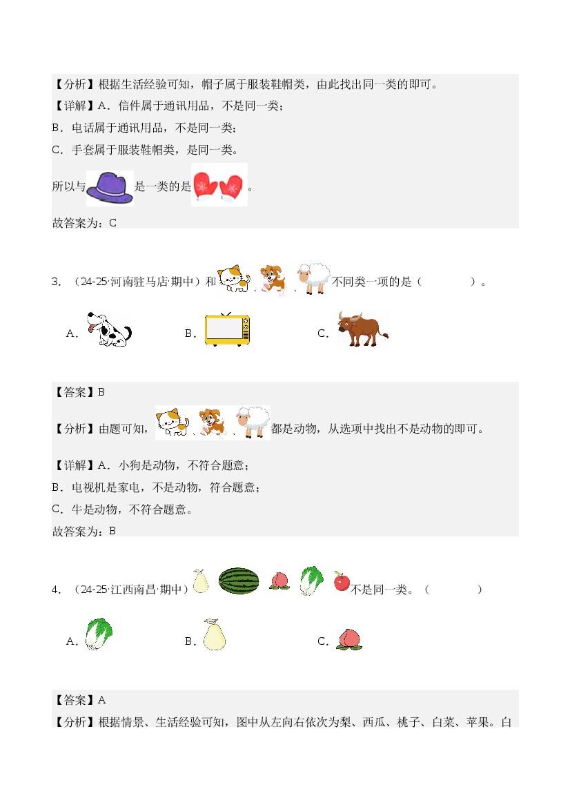 首页 > 全部 > 期中专项 > 专题01:分类与整理(期中专项训练)二年级数学上册(人教版·新教材)(解析版)