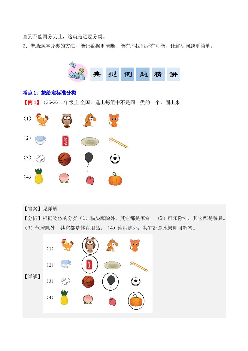 首页 > 全部 > 期中专项 > 专题01:分类与整理(期中知识清单)二年级数学上册(人教版·新教材)(解析版)