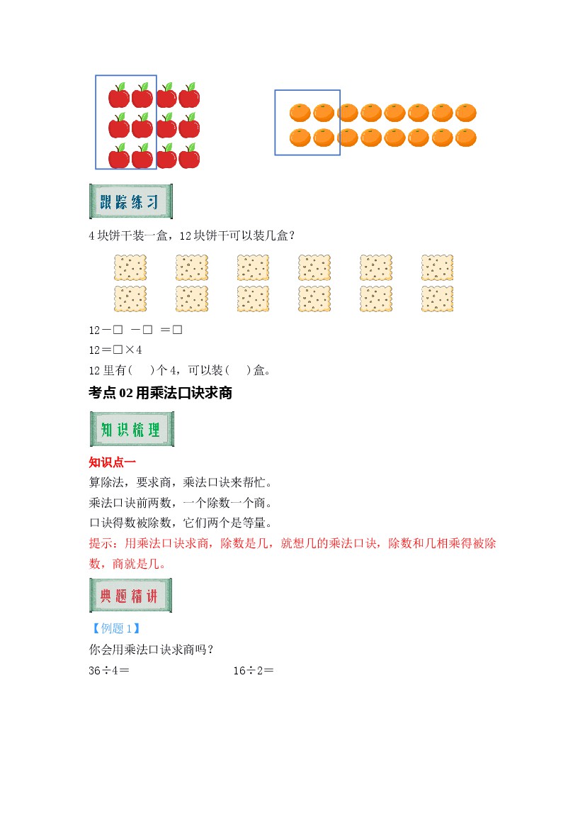 小学 25年秋【二上数学】专题二:乘法、除法(一)(知识清单)(2)-(沪教版)
