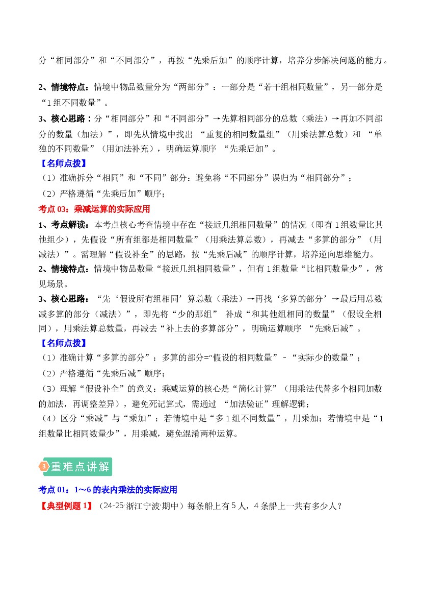 首页 > 全部 > 专项练习 > 专项提升02:1~6的表内乘法(应用题,3大考点)(考点梳理+方法点拨+重难点讲解+提升训练)二年级数学上册(人教版·新教材)(解析版)