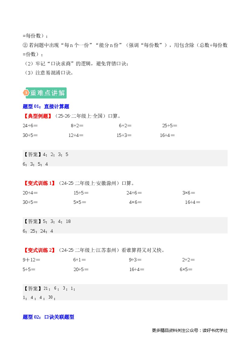 首页 > 全部 > 专项练习 > 专项提升05:1~6的表内除法(计算专练)(考点梳理+方法点拨+重难点讲解+巩固提升训练)二年级数学上册(人教版·新教材)(解析版)