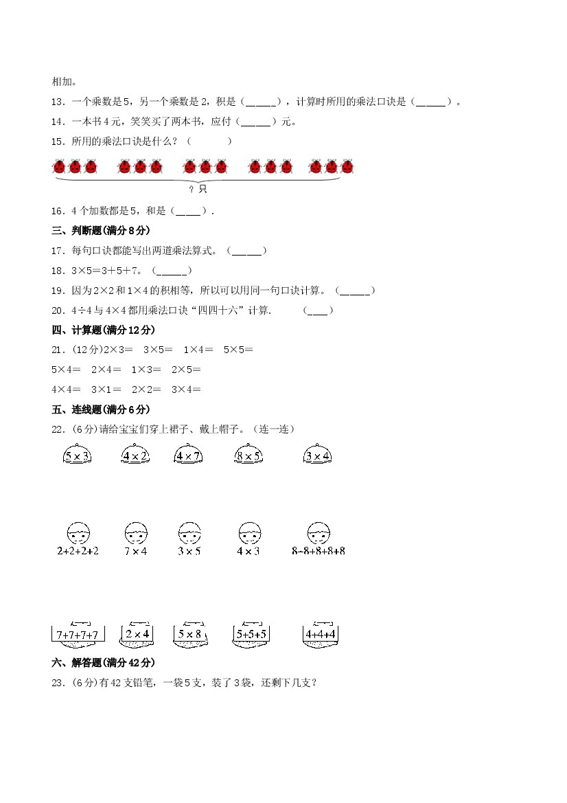 小学 【分层训练】单元测试-第五单元 2—5的乘法口诀(基础卷+培优卷) 北师大版(含答案)