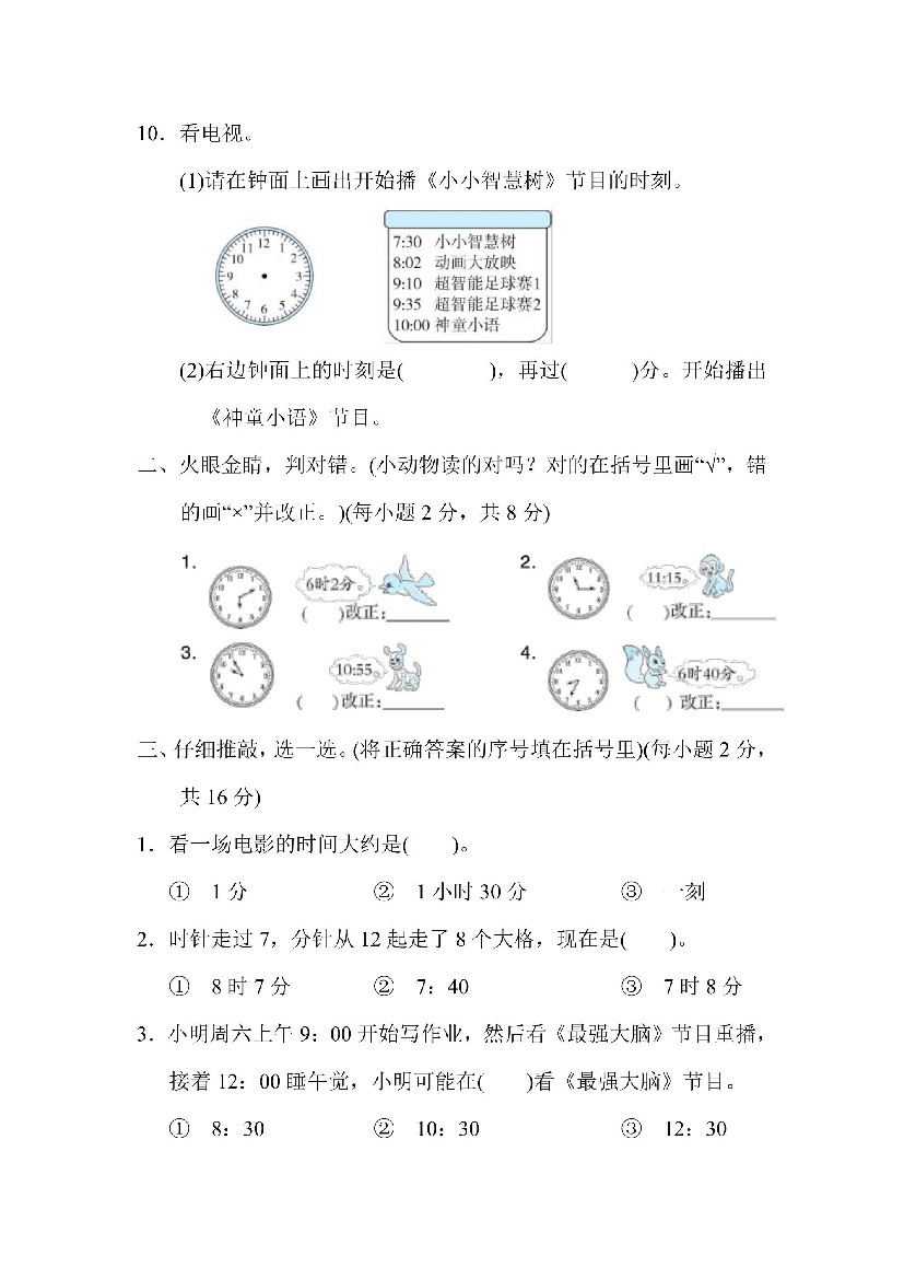 小学 【人教】二上数学第7单元达标检测卷