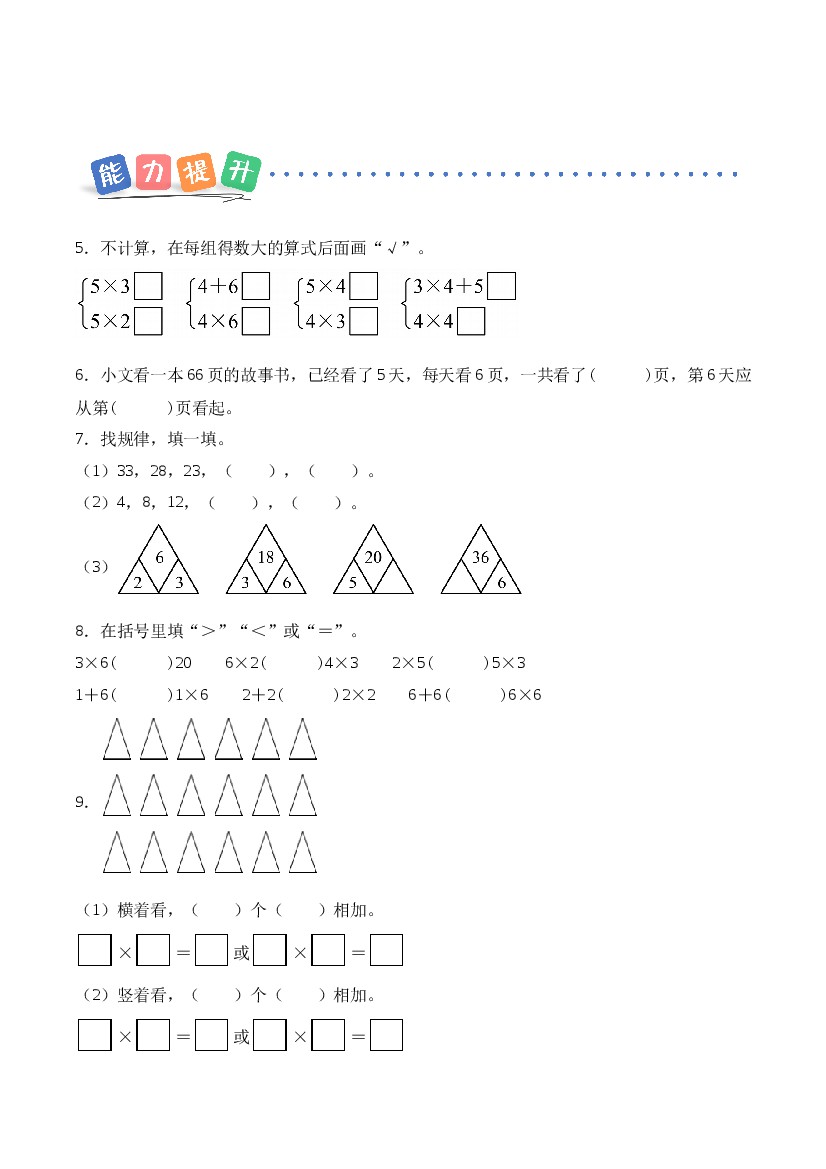 首页 > 全部 > 课时练习 > 25年二上数学【苏教版】第一单元 第5课时 6的乘法口诀(分层作业)