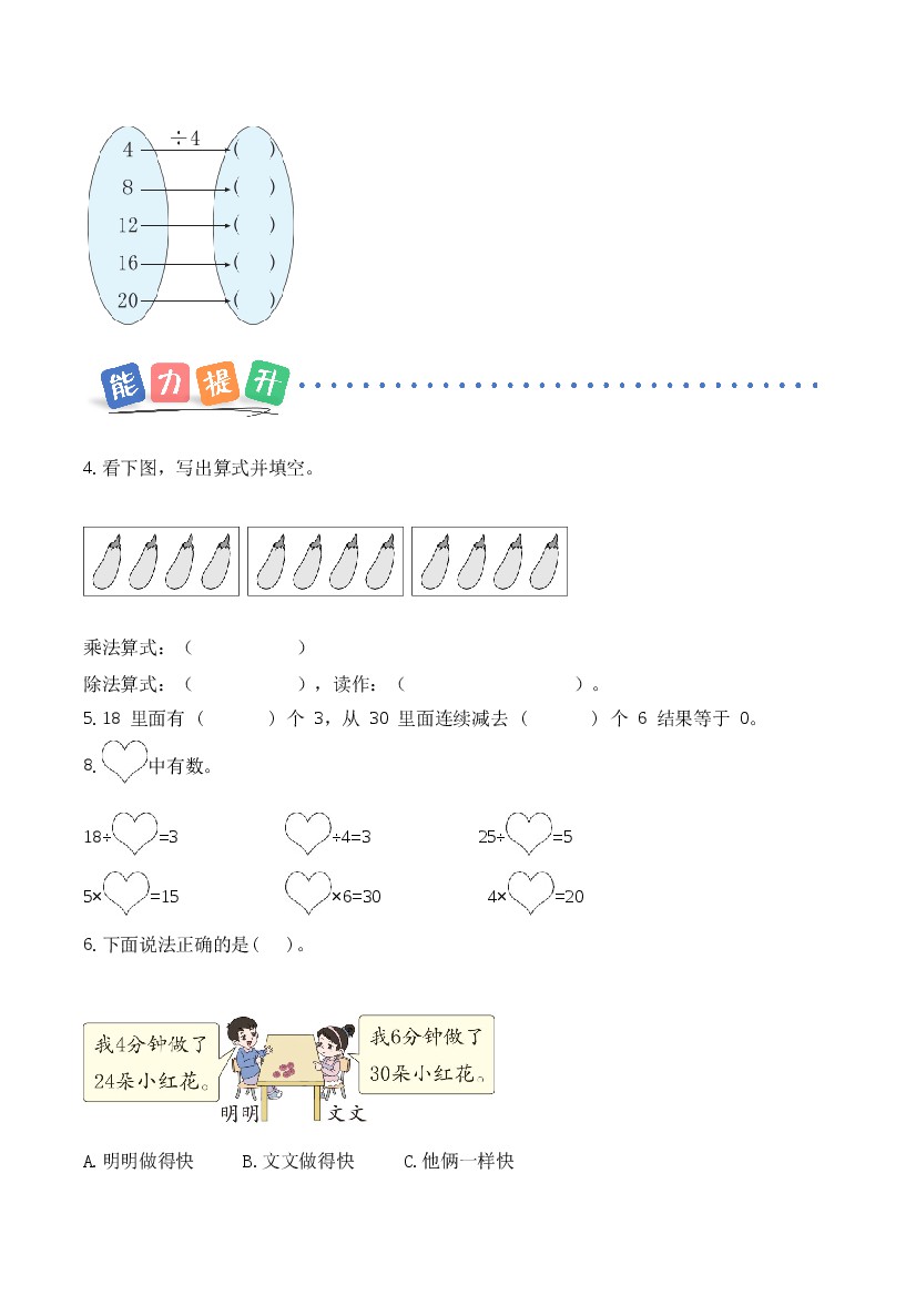 首页 > 全部 > 课时练习 > 25年二上数学【苏教版】第二单元 第4课时 用2-6的乘法口诀求商(分层作业)