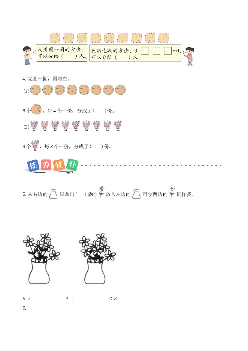 首页 > 全部 > 课时练习 > 25年二上数学【苏教版】第二单元 第2课时 平均分的两种分法(分层作业)