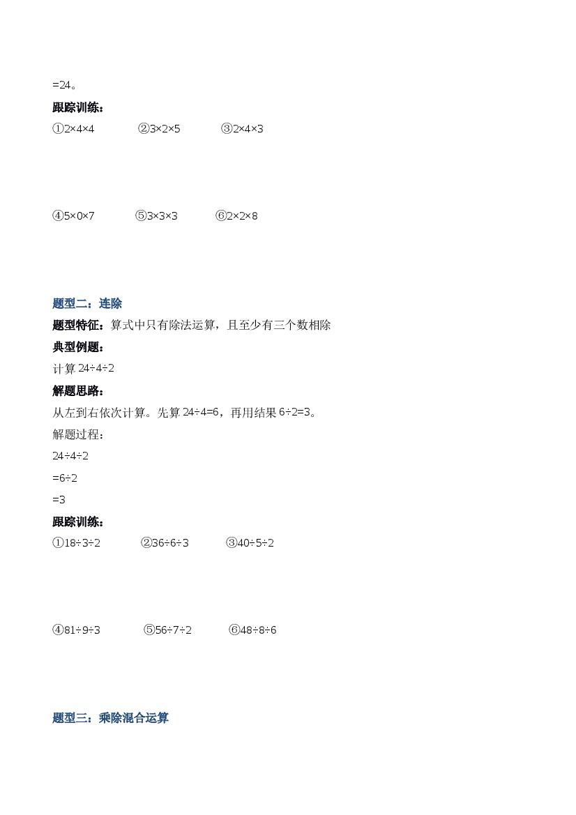 专题5 乘除混合运算法(计算专项训练)数学青岛版二年级上册(25秋新教材)