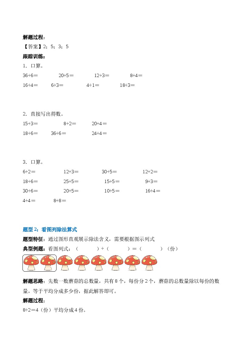 小学 【计算专项】25秋二年级上册数学苏教版专题2 1~6的表内除法(计算专项训练)(新教材)