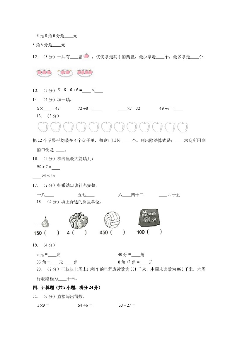 首页 > 全部 > 期末试卷 > 北师版数学二年级上学期期末预测卷03(含答案)