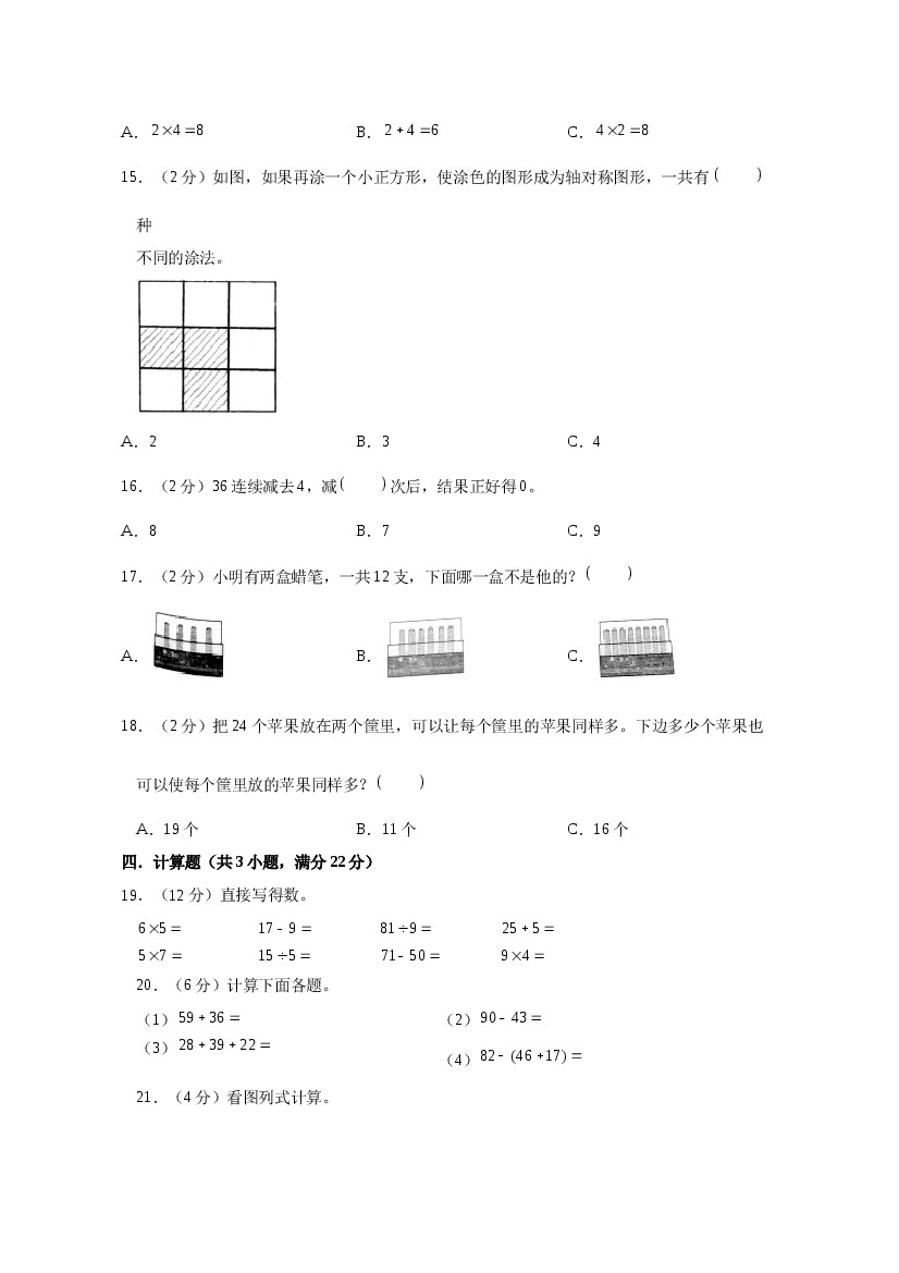 首页 > 全部 > 期末试卷 > 北师版数学二年级上学期期末预测卷05(含答案)