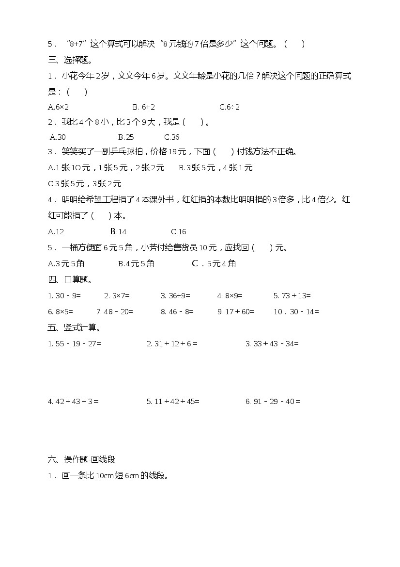 首页 > 全部 > 期末专项 > 【易错专练】北师大版二年级上册数学期末易错题型专练卷(含答案)