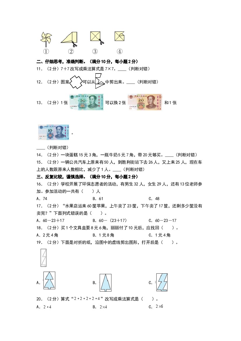 小学 25年秋二年级上册(北师大版)数学(基础卷02)(含答案)