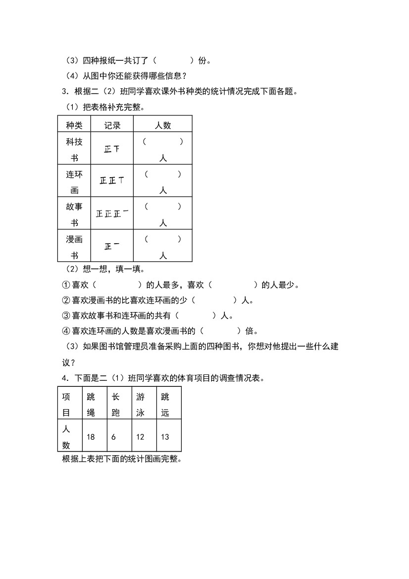 小学 25年秋【二上数学】期中典例专练三:统计表和条形统计图综合-(学生版)沪教版