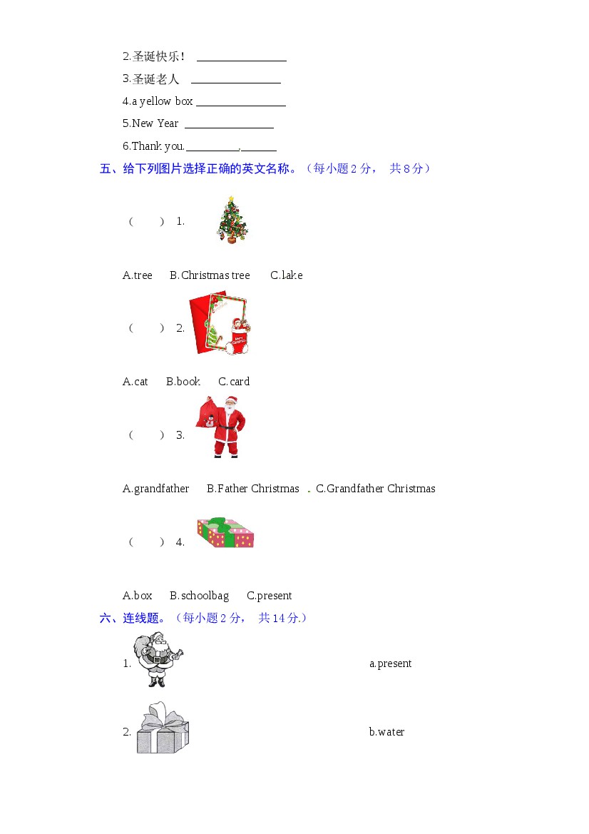 首页 > 全部 > 单元测试 > 人教版二年级上册英语 第六单元核心基础卷-Unit 6 Happy holidays(含答案)
