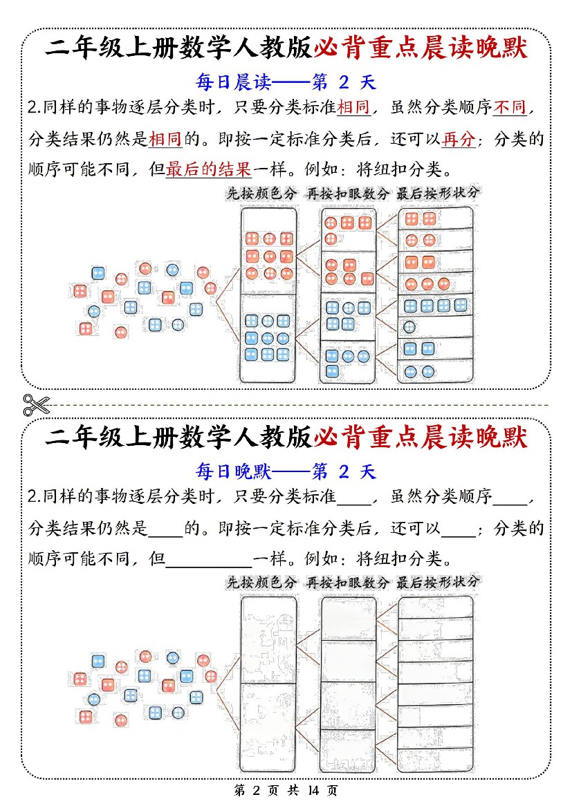小学 新二上数学人教版必背重点晨读晚默14天(14页)