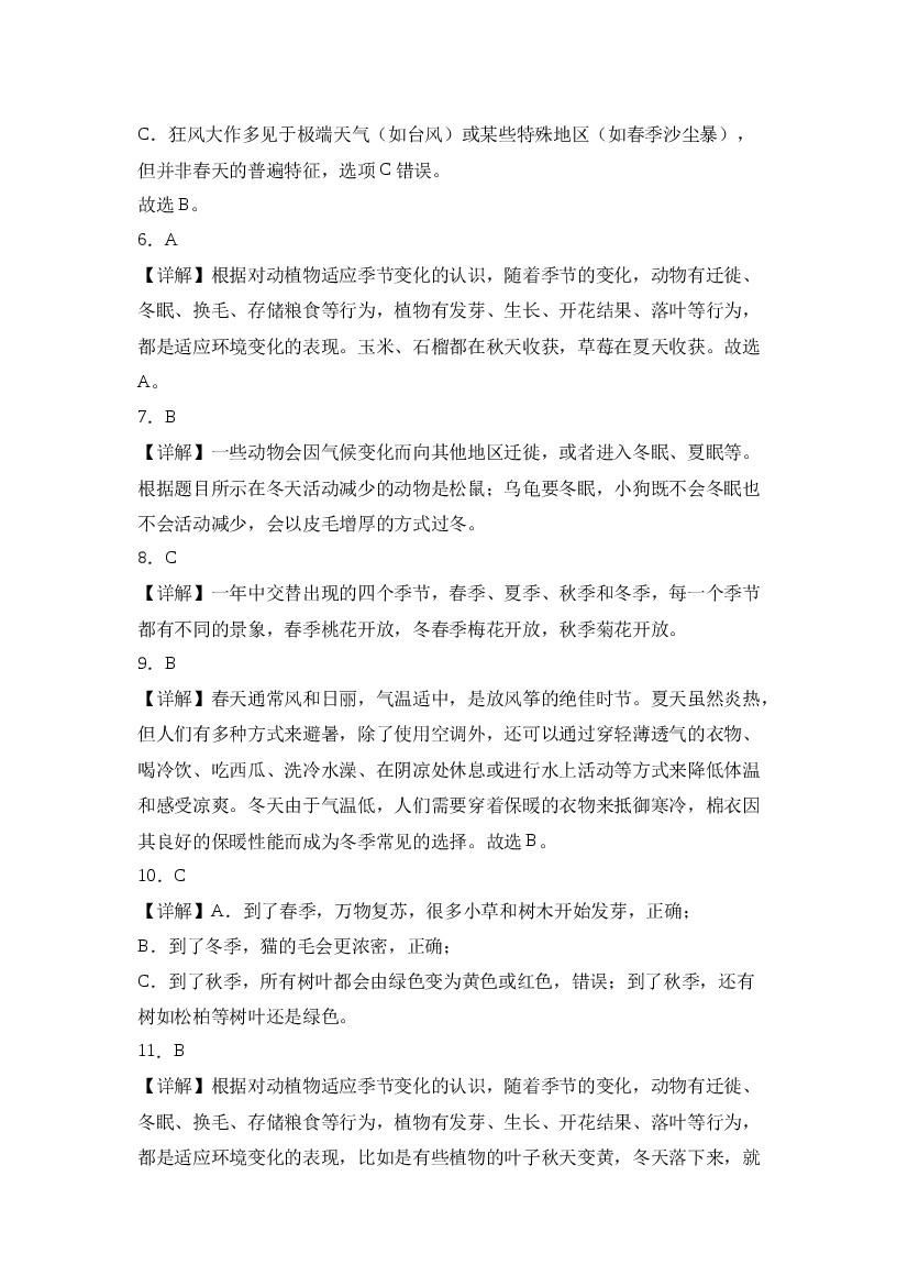 2025年秋新版粤教粤科版小学科学二年级上册(答案解析)第三单元 不同的季节(单元测试)