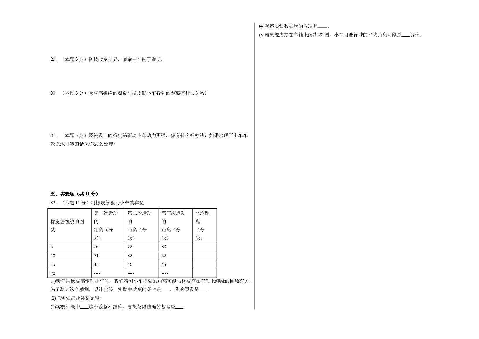 2025年秋新版粤教粤科版小学科学二年级上册第四单元 橡皮筋动力小车(单元测试) A3版