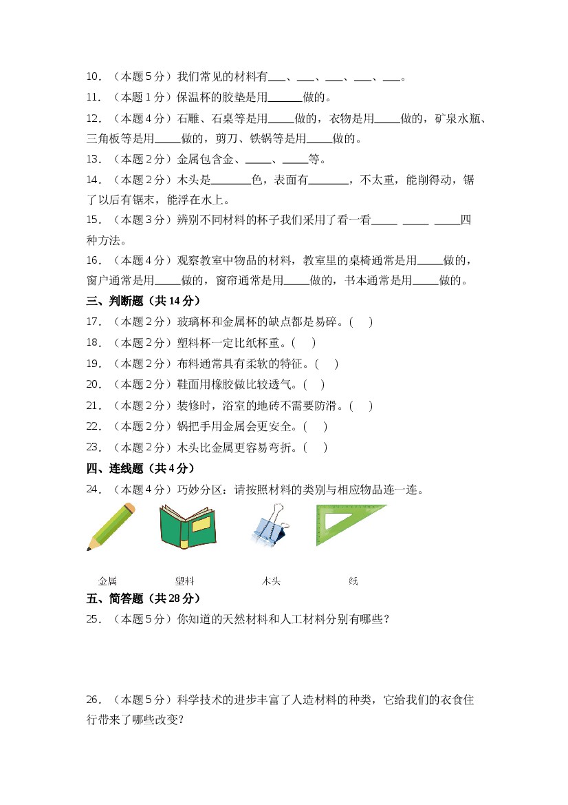 小学 25年秋二上科学(苏教版)第一单元它们是用什么做的(单元测试) A4版