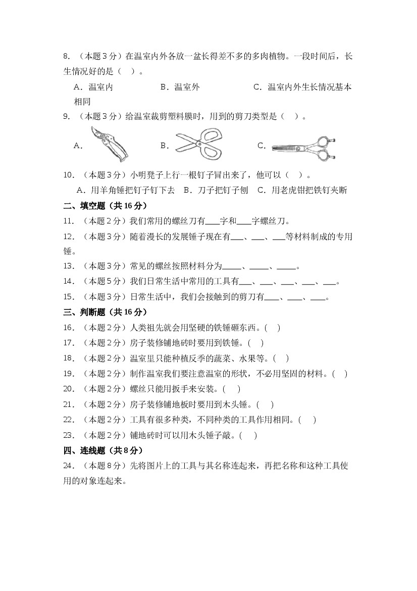 小学 25年秋二上科学(苏教版)第四单元打开工具箱(单元测试) A4版