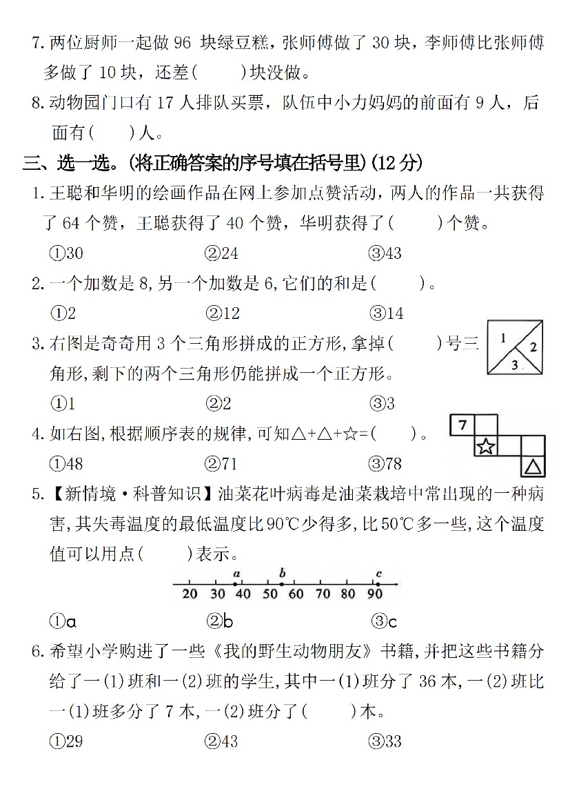 小学 (苏教版)一年级下册数学期末押题卷