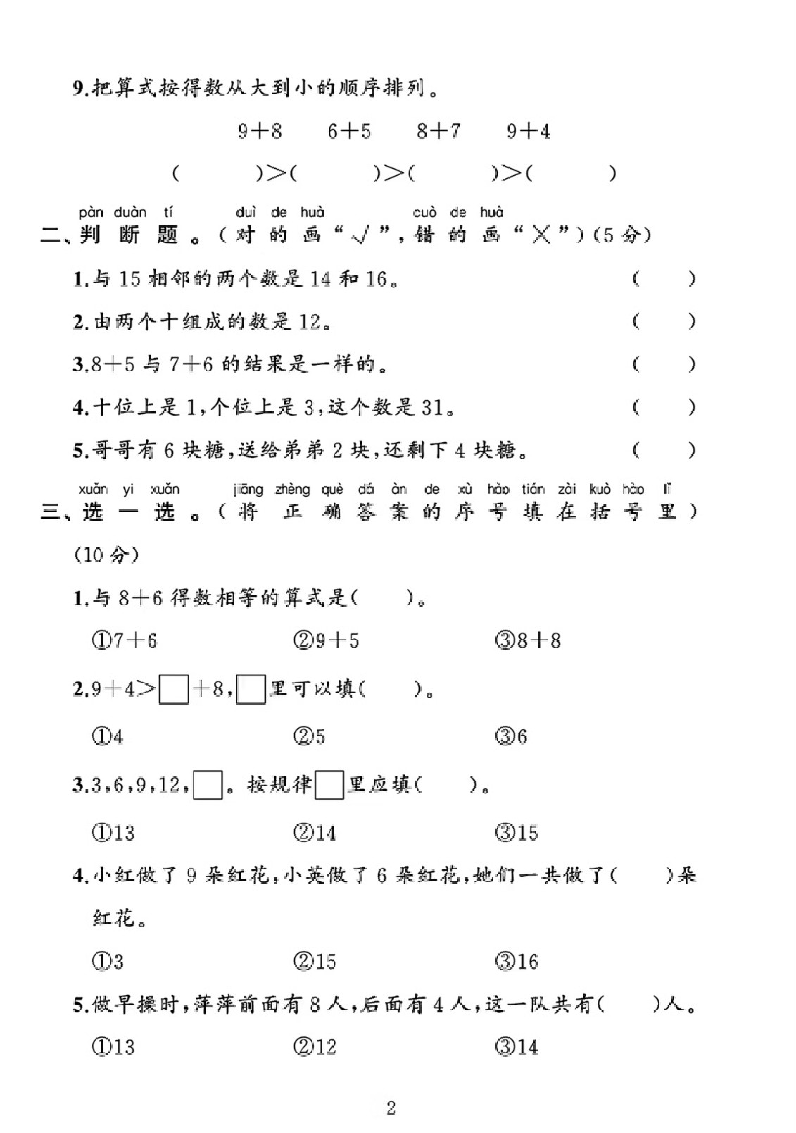 首页 > 全部 > 期中试卷 > 25春一下北师大版数学第一单元《20以内数与加法》测试卷