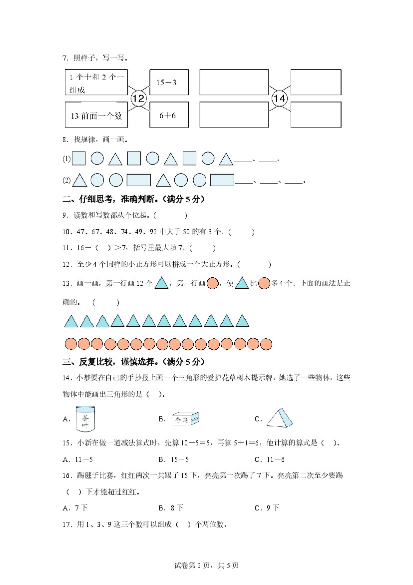 首页 > 全部 > 期中试卷 > 2024-2025学年西师大版一年级下册期中素养测评数学试卷(提高卷)