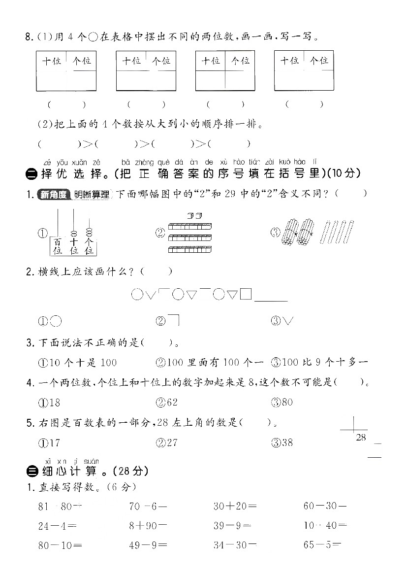 小学 【试卷】25学年青岛54一下数学第一次月考测试卷
