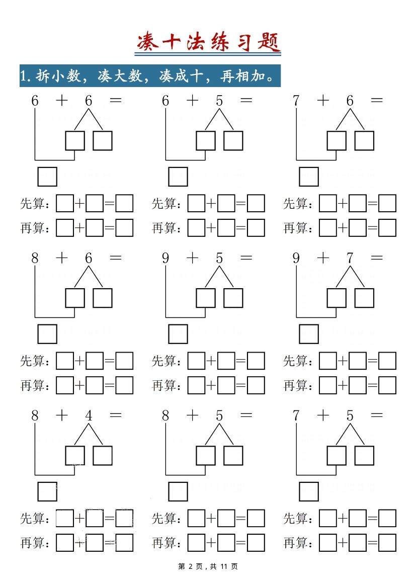 小学 一年级(下)数学加减速算练习(11页)