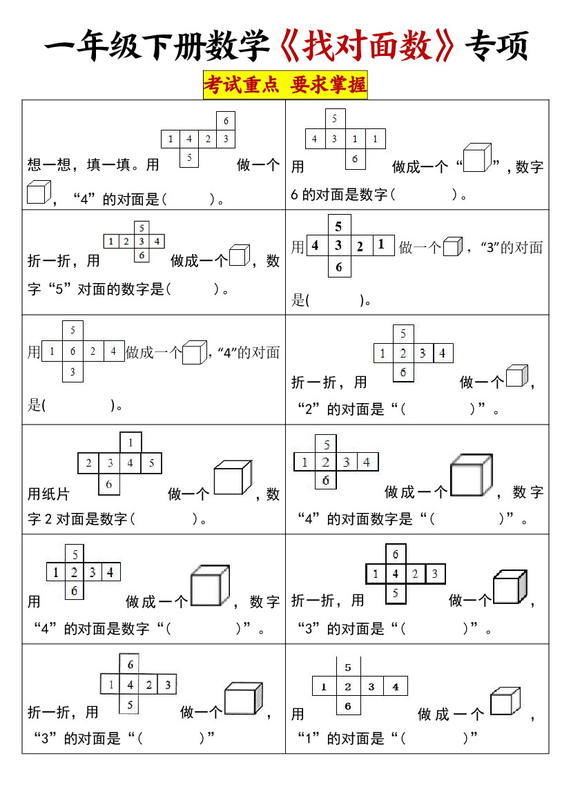 首页 > 全部 > 专项练习 > 【找对面数重点专项练习】一下数学(6)