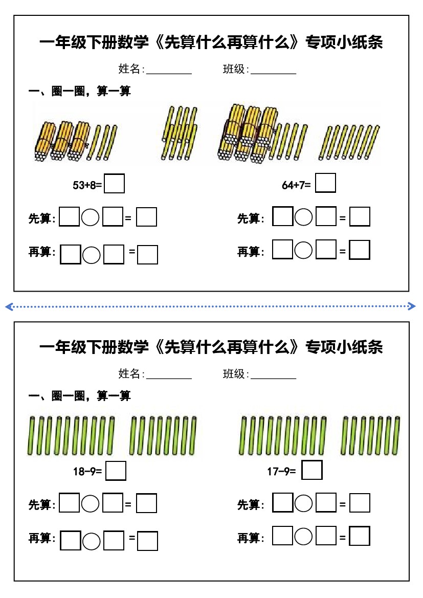 【专项】一年级下册数学先算什么再算什么每日练习小纸条