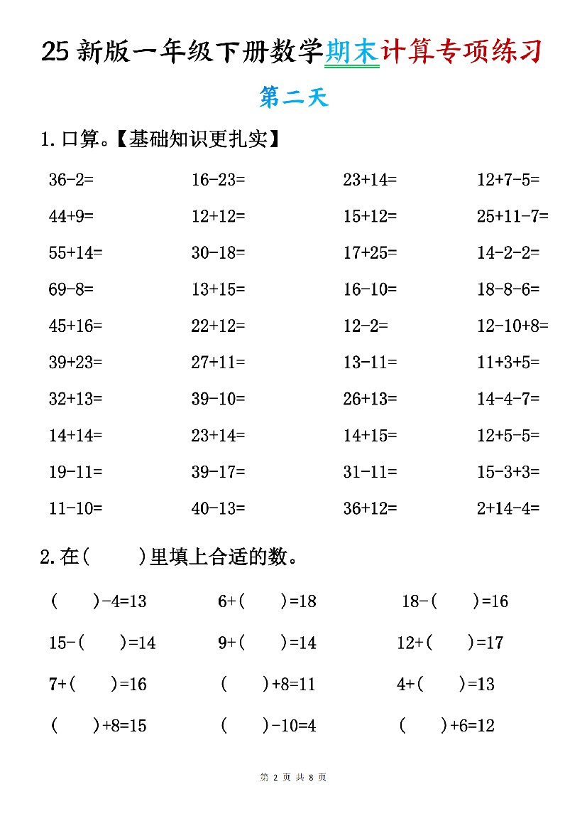 首页 > 全部 > 专项练习 > 25新一年级下册数学期末计算专项练习