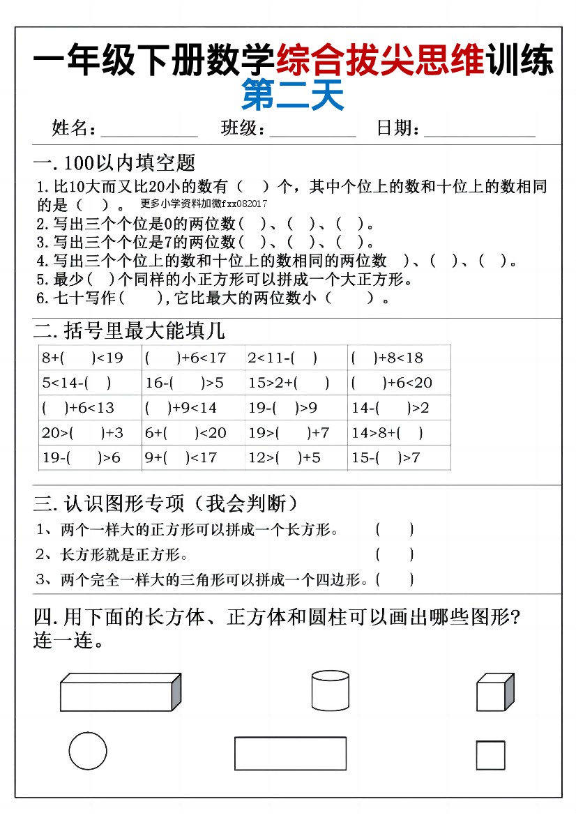 25春一年级下册数学综合拔尖思维训练