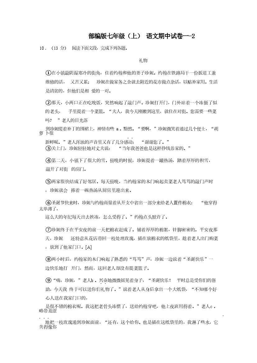 七年级(上)语文期中试卷2-1卷部编版