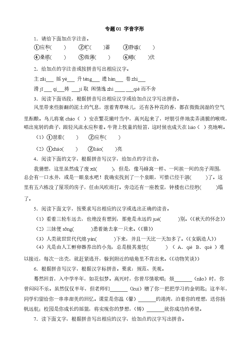 25年秋七上语文期中专项训练专题01 字音字形