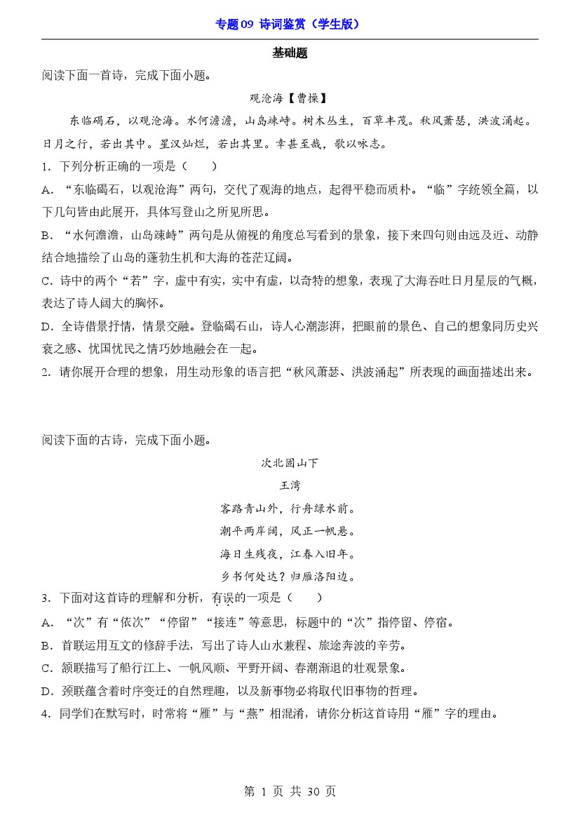 25年秋七上语文期中专项训练专题09 诗词鉴赏