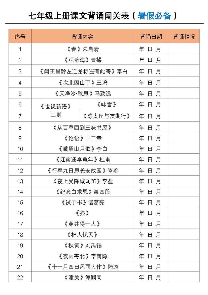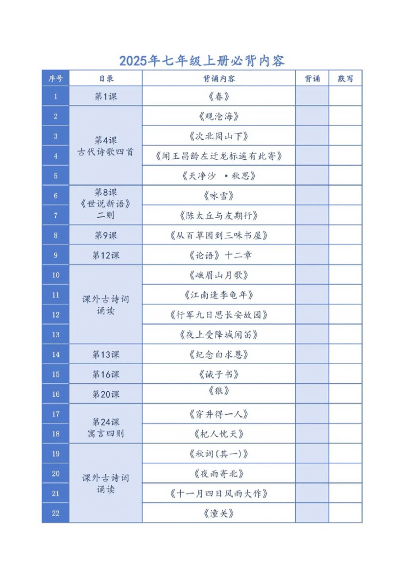【最新版】部编版七年级上册语文全册必背内容总结早背晚默
