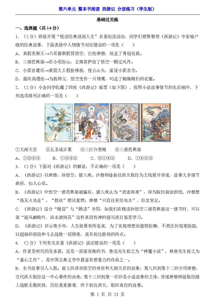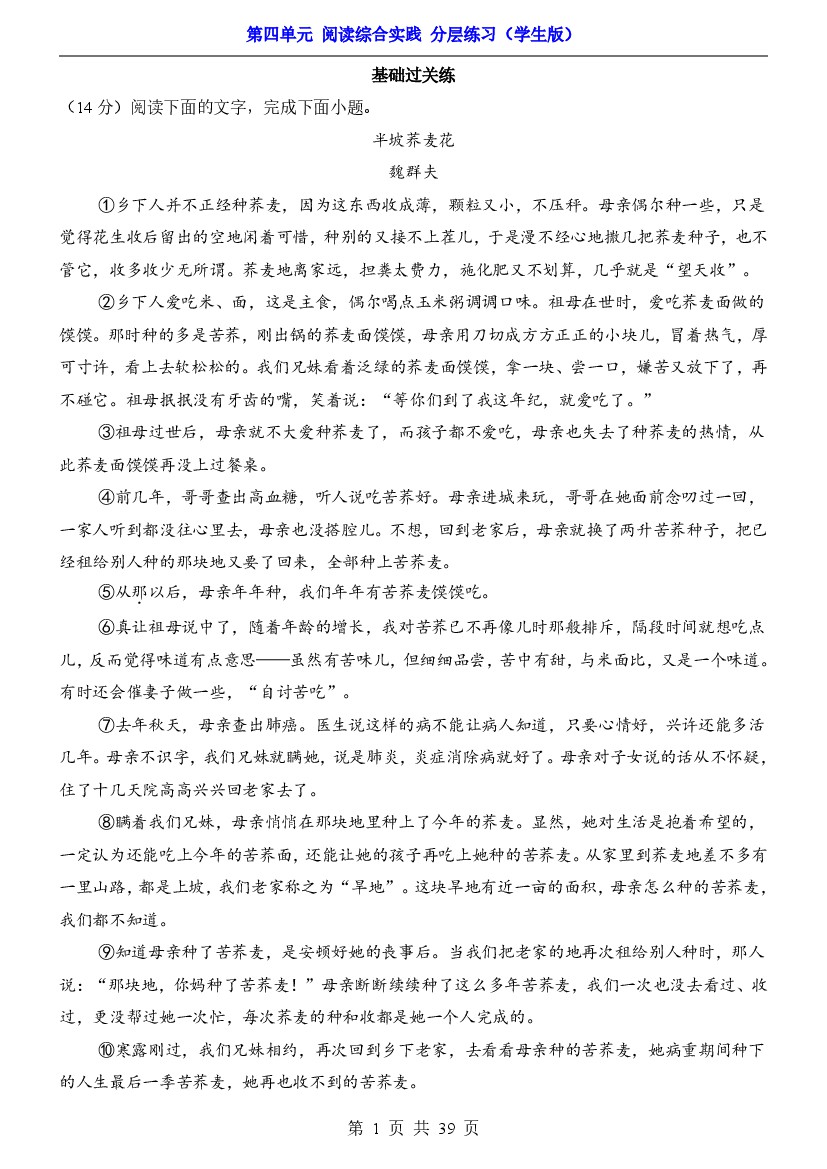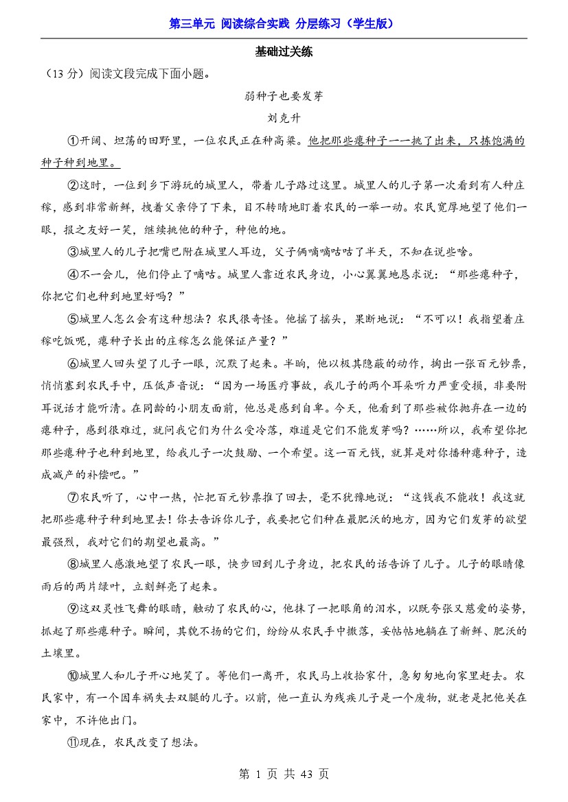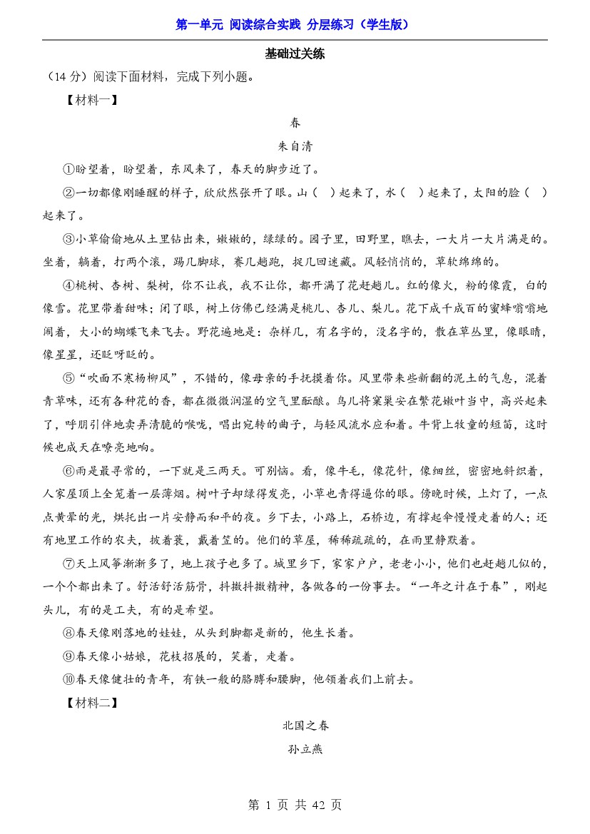 七上第三单元 整本书阅读 朝花夕拾(分层练习)