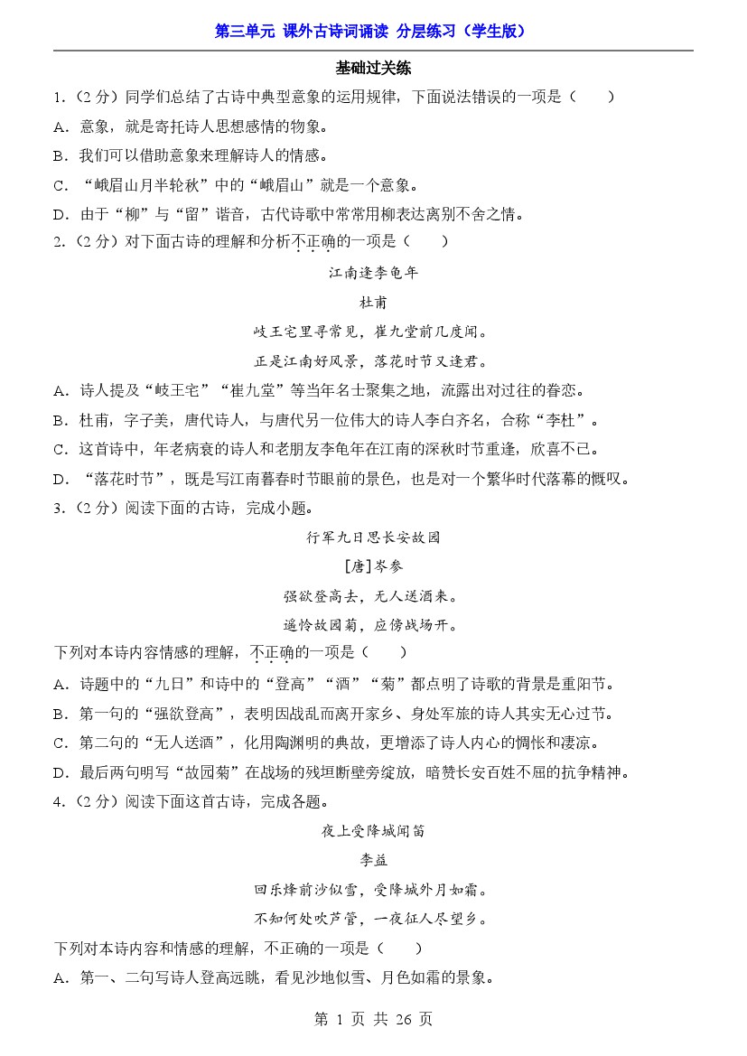 七上第四单元 综合性学习 少年正是读书时(分层练习)