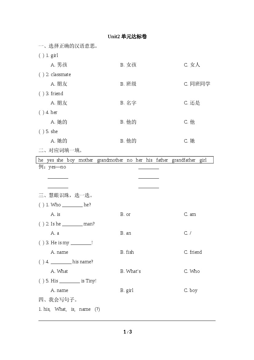 25年秋【二上英语】【人教新起点】Unit3_单元达标卷