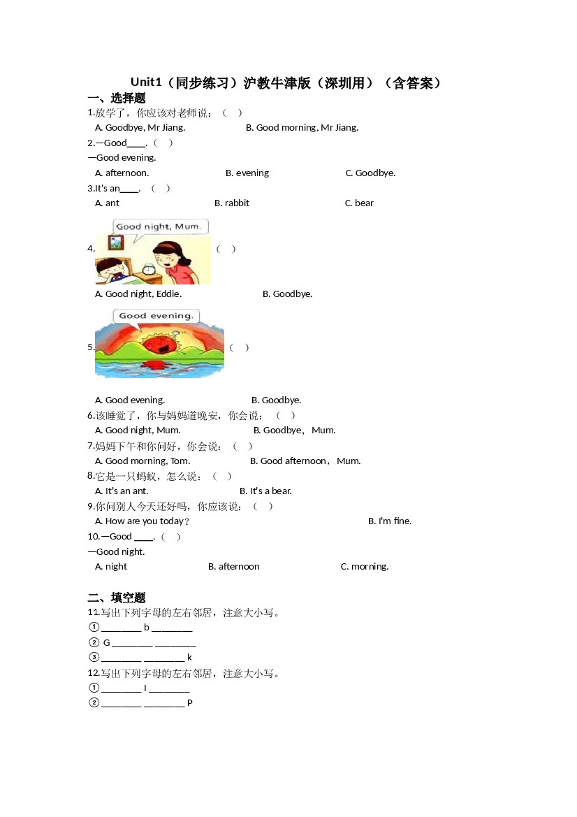 Unit 1 Good morning(同步练习)-二年级英语上册-沪教牛津版(深圳用)(含答案)